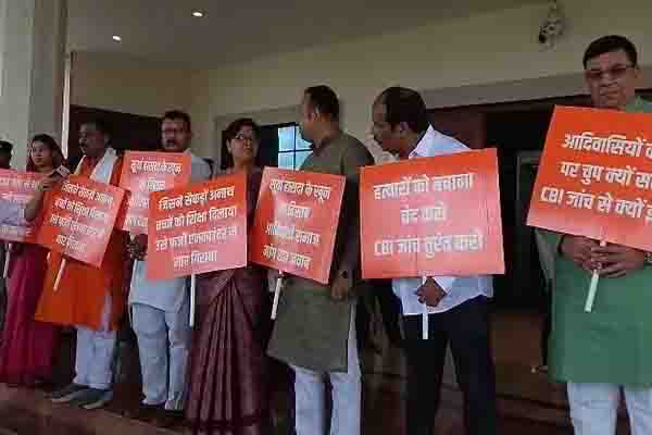 Ranchi : विधानसभा के मॉनसून सत्र के दूसरे दिन सोमवार को सदन की कार्यवाही शुरू होने से पहले भाजपा के विधायकों ने जोरदार विरोध प्रदर्शन किया। भाजपा विधायकों ने सूर्या हांसदा के कथित फर्जी एनकाउंटर का मुद्दा उठाते हुए राज्य सरकार पर गंभीर आरोप लगाए। विधायक हाथों में तख्तियां लिए नारेबाजी कर रहे थे। वे बार-बार नारा लगा रहे थे – “सूर्या हांसदा के खून का हिसाब, आदिवासी समाज मांग रहा जवाब।” भाजपा विधायकों का कहना था कि सरकार इस मामले में चुप्पी साधे हुए है और पीड़ित परिवार तथा आदिवासी समाज को न्याय नहीं मिल रहा है।