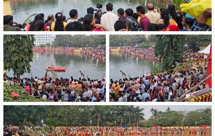 झारखंड की राजधानी रांची समेत राज्य भर में छठ व्रतियों ने डूबते सूर्य को अर्ध्य अर्पित किया