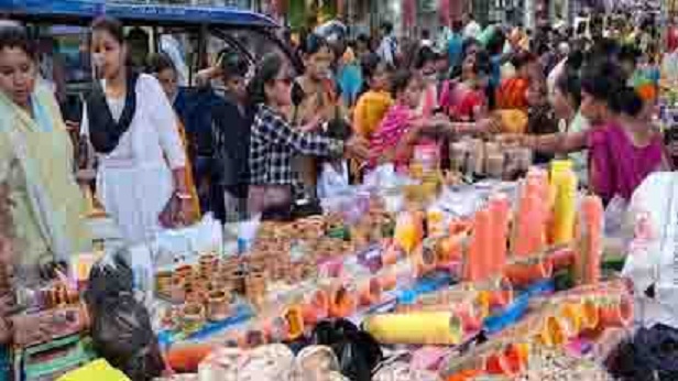 बाजार में रंग बिरंगी चूड़ियां इस बार आकर्षक का केद्र बनी है. चांदी और पिंक रंग की चूड़ियां महिलाओं की पसंदीदा बनी हुई हैं. दुकानों पर इनकी खरीददारी जोरों पर है. महज 100 रूपया में 12 पीस का सेट मिलने के कारण महिलाएं जमकर खरीददारी करते दिखाई दे रही थी. इसके अलावा 70 रूपया में अलग-अलग पूजा सेट भी बाजार में उपलब्ध हैं.