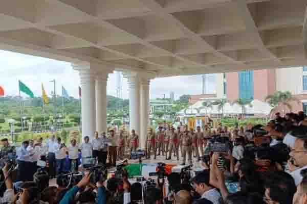 Ranchi : झारखंड के शिक्षा मंत्री रामदास सोरेन का पार्थिव शरीर शनिवार को दिल्ली से रांची लाया गया, जिसे झारखंड विधानसभा परिसर में अंतिम दर्शन के लिए रखा गया। यहां मुख्यमंत्री चंपई सोरेन समेत कई नेताओं और अधिकारियों ने उन्हें राष्ट्रीय सम्मान के साथ श्रद्धांजलि दी। विधानसभा परिसर में गमगीन माहौल रहा। इसके बाद उनका पार्थिव शरीर घाटशिला स्थित उनके आवास के लिए रवाना किया जायेगा। रामदास सोरेन के निधन से राज्य में शोक की लहर है। उनके सम्मान में एक दिन का राजकीय शोक घोषित किया गया है और सभी कार्यक्रम रद्द किए गए हैं।