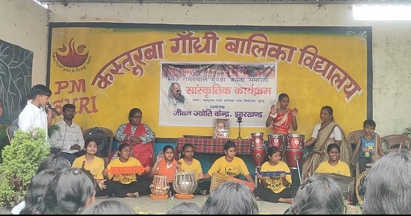 “जे नाची से बाची”: कस्तूरबा गांधी बालिका विद्यालय, बुंडू में स्व. राम दयाल मुंडा की जयंती पर सांस्कृतिक कार्यक्रम आयोजित