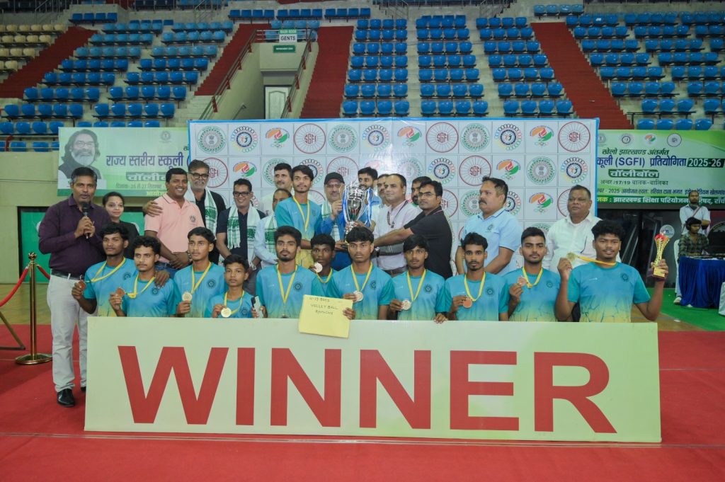 रांची : स्कूली शिक्षा एवं साक्षरता विभाग, झारखंड अंतर्गत झारखंड शिक्षा परियोजना परिषद की ओर से आयोजित तीन दिवसीय राज्य स्तरीय वॉलीबॉल प्रतियोगिता का भव्य समापन शनिवार को खेलगांव स्थित हरिवंश ताना भगत इनडोर स्टेडियम में हुआ। प्रतियोगिता में राज्य के विभिन्न जिलों से अंडर-17 और अंडर-19 बालक-बालिका वर्ग के खिलाड़ियों ने हिस्सा लिया और दमदार प्रदर्शन किया।