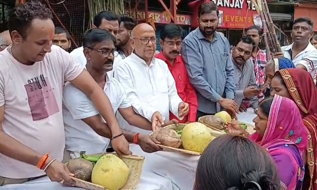 विधायक सरयू राय ने व्रतधारियों के बीच बांटी पूजन सामग्री