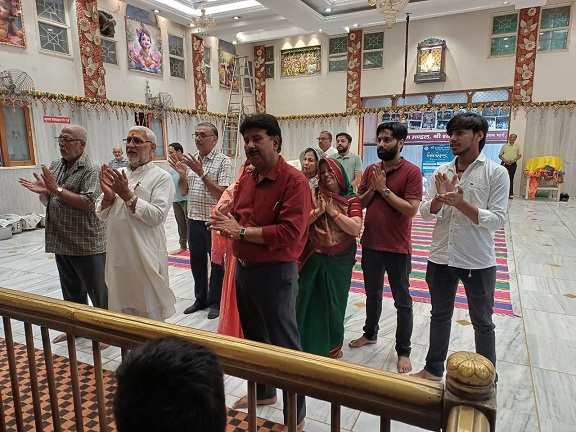 इस शुभ अवसर पर आचार्य श्री श्याम सुन्दर भारद्वाज मुख्य यजमान के रूप में अपने परिवार सहित — राधे श्याम भारद्वाज, नटवर लाल भारद्वाज एवं राज कुमार भारद्वाज — भोग अर्पण में सहभागी बने। भोग में पूरी-सब्जी, पुड़ा, बड़ा और विविध प्रकार के मिष्ठान्न अर्पित किए गए।