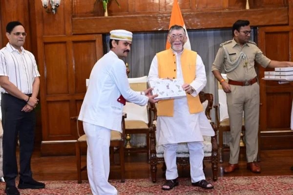 Ranchi : झारखंड के राज्यपाल संतोष गंगवार ने राजभवन परिवार के सभी कर्मचारियों को धनतेरस एवं दीपावली की शुभकामनाएं दीं। उन्होंने सभी को विशेष उपहार भी भेंट किए। राज्यपाल ने अपने X (पूर्व ट्विटर) हैंडल पर इस मुलाकात की तस्वीर साझा की है। उन्होंने लिखा, “राज भवन परिवार के सभी कर्मियों से भेंट कर उन्हें ‘धनतेरस’ एवं ‘दीपावली’ की हार्दिक शुभकामनाएँ दीं। ये पावन पर्व सबके जीवन में सुख, समृद्धि और अपार खुशियाँ लेकर आएँ, यही हमारी प्रार्थना है।”