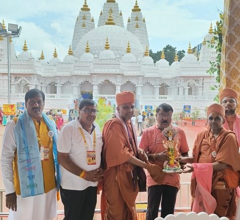 समिति के अध्यक्ष अशोक चौधरी और प्रवक्ता प्रमोद सारस्वत ने पंडाल में बने स्वामी नारायण मंदिर का उन सभी को अवलोकन कराया। पंडाल के गर्भगृह में जाकर मां की पूजा अर्चना सहित आशीर्वाद प्राप्त किया। संत भुज से स्वामी नारायण भगवान के विग्रह के साथ पहुचे थे। पूरे पंडाल की कलाकृतियों का बारीकियां से अवलोकन किया और कहा कि भुज के सफेद संगमरमर की तरह यह पूजा पंडाल उसी का प्रारूप लग रहा है।