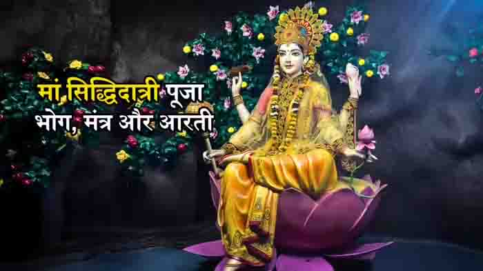 मां सिद्धिदात्री की तस्वीर या मूर्ति स्थापित करने के बाद उन्हें, पूजा सामग्री अर्पित करें और विधि-विधान से माता की पूजा करें। साथ ही, भोग लगाएं और मंत्रों का जाप करने के बाद आरती जरूर उतारें।