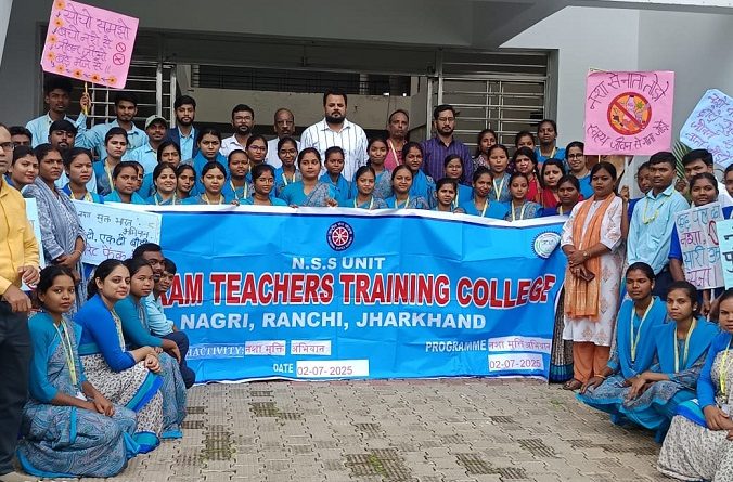 रांची: राष्ट्रीय सेवा योजना इकाई के तत्वावधान में श्रीराम टीचर्स ट्रेनिंग कॉलेज, रांची ने नशामुक्ति अभियान के अंतर्गत ग्राम सुगदा के सारो में एक विशेष सामुदायिक जनजागरूकता कार्यक्रम का आयोजन किया। इस पहल का मुख्य उद्देश्य ग्रामीण समुदाय को नशे के बढ़ते प्रचलन और उसके गंभीर स्वास्थ्यगत, सामाजिक एवं पारिवारिक दुष्परिणामों के प्रति जागरूक करना था।