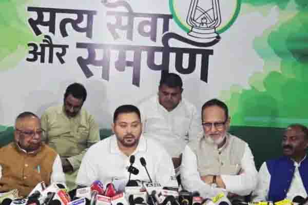 Patna : बिहार विधानसभा चुनाव से पहले राष्ट्रीय जनता दल (RJD) के नेता प्रतिपक्ष तेजस्वी यादव ने पोलो रोड स्थित अपने आवास पर प्रेस वार्ता की। उन्होंने जीविका दीदियों, संविदा कर्मियों और बिहार की माताओं-बहनों के लिए बड़ी घोषणाएं कीं। तेजस्वी ने कहा कि बिहार के लोग गरीबी, महंगाई और बेरोजगारी से तंग आ चुके हैं और बदलाव चाहते हैं।